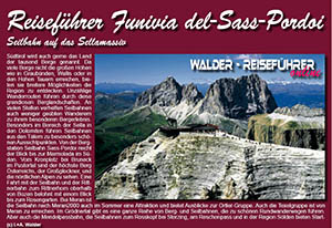 Der Sass Pordoi ist ein plateauförmiger Felsgipfel im Massiv der Sella in den Dolomiten. Die 1962 erbaute Seilbahn war eine der ersten in den Dolomiten, die 65 Personen in vier Minuten über fast 700m Höhenunterschied vom Pordoisattel zum Felsplateau auf dem Gipfel beförderte. Die Seilbahn wurde in den Jahren 1994/95 umfangreich saniert und modernisiert. An der Talstation steht man bereits vor einer der schönsten Felsformationen der Dolomiten, der Pordoi-Spitze. Bei der fast senkrechten Auffahrt scheinen die Reliefs und Schichtungen zum Greifen nah. Von der Bergstation auf der atemberaubenden natürlichen Terrasse der Dolomiten bietet sich ein unvergleichliches 360°-Panorama. Das Fassatal und die Marmolada liegen im Süden, während sich im Osten und Norden die karge Felslandschaft des Sellastocks erstreckt, in der sich bis in den Frühsommer hinein noch große Schneeflächen ausbreiten. Der. ...