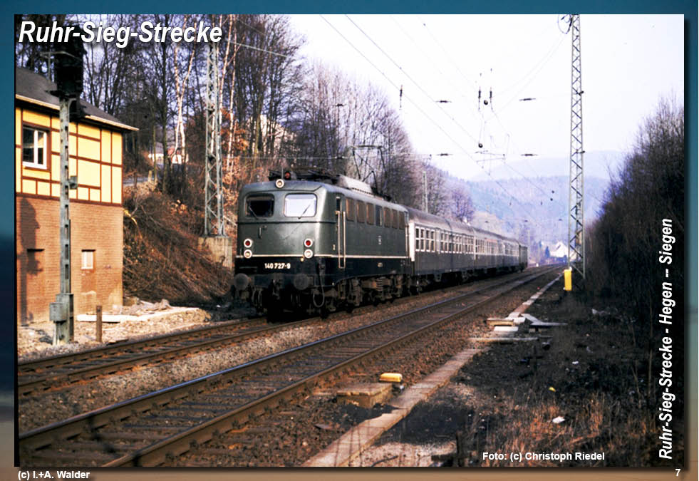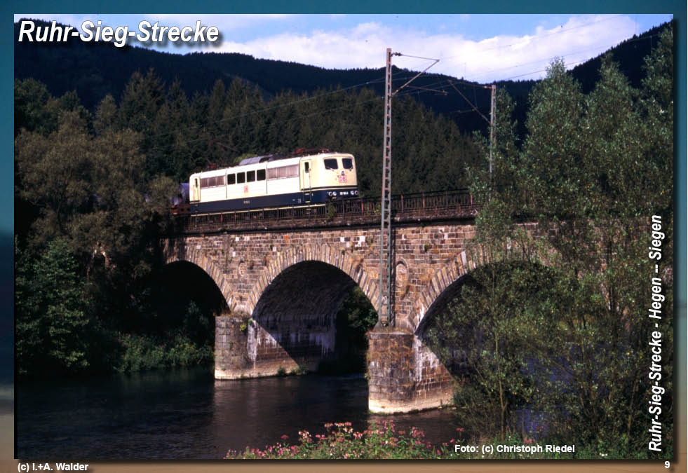 Inzwischen sieht man fast nur noch die modernen Elektrolokomotiven auf der Ruhr-Sieg- Strecke (Brücke bei Plettenberg)